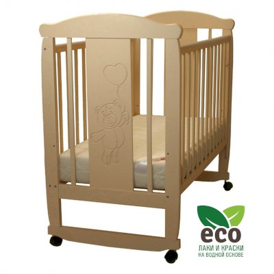 Детская кроватка с полозьями на колесах Соня 02 с декором Мишка (Соня) – товар доступен к покупке в интернет-магазине penzenskiy-dommebeli.ru. Цена – 10 528 руб. без учета доставки. Стоимость дополнительных услуг и сроки получения мебели уточняйте у менеджера. Возможен безналичный расчет, оплата по карте на сайте.