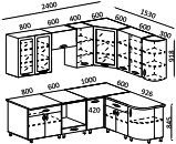 Кухонный гарнитур "Ника-1" фасад "Мыло 128" 2,4мх1,5м глянец