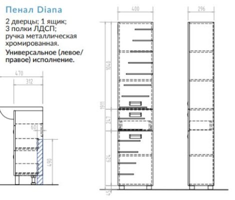 Пенал Diana (Виго) – товар доступен к покупке в интернет-магазине penzenskiy-dommebeli.ru. Цена – 14 528 руб. без учета доставки. Стоимость дополнительных услуг и сроки получения мебели уточняйте у менеджера. Возможен безналичный расчет, оплата по карте на сайте.