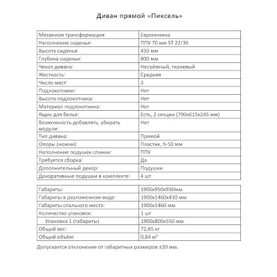 Диван Пиксель (Аквилон) – товар доступен к покупке в интернет-магазине penzenskiy-dommebeli.ru. Цена – 30 317 руб. без учета доставки. Стоимость дополнительных услуг и сроки получения мебели уточняйте у менеджера. Возможен безналичный расчет, оплата по карте на сайте.